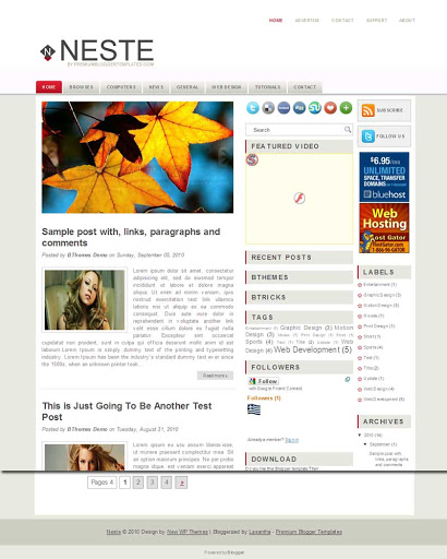 2 Sidebar, 3 Column, Adapted from Wordpress, Featured Section, Fixed width, Header Banner, Magazine, Right Sidebar, Rounded corners, Slider, Top Navigation Bar, Web 2.0, White